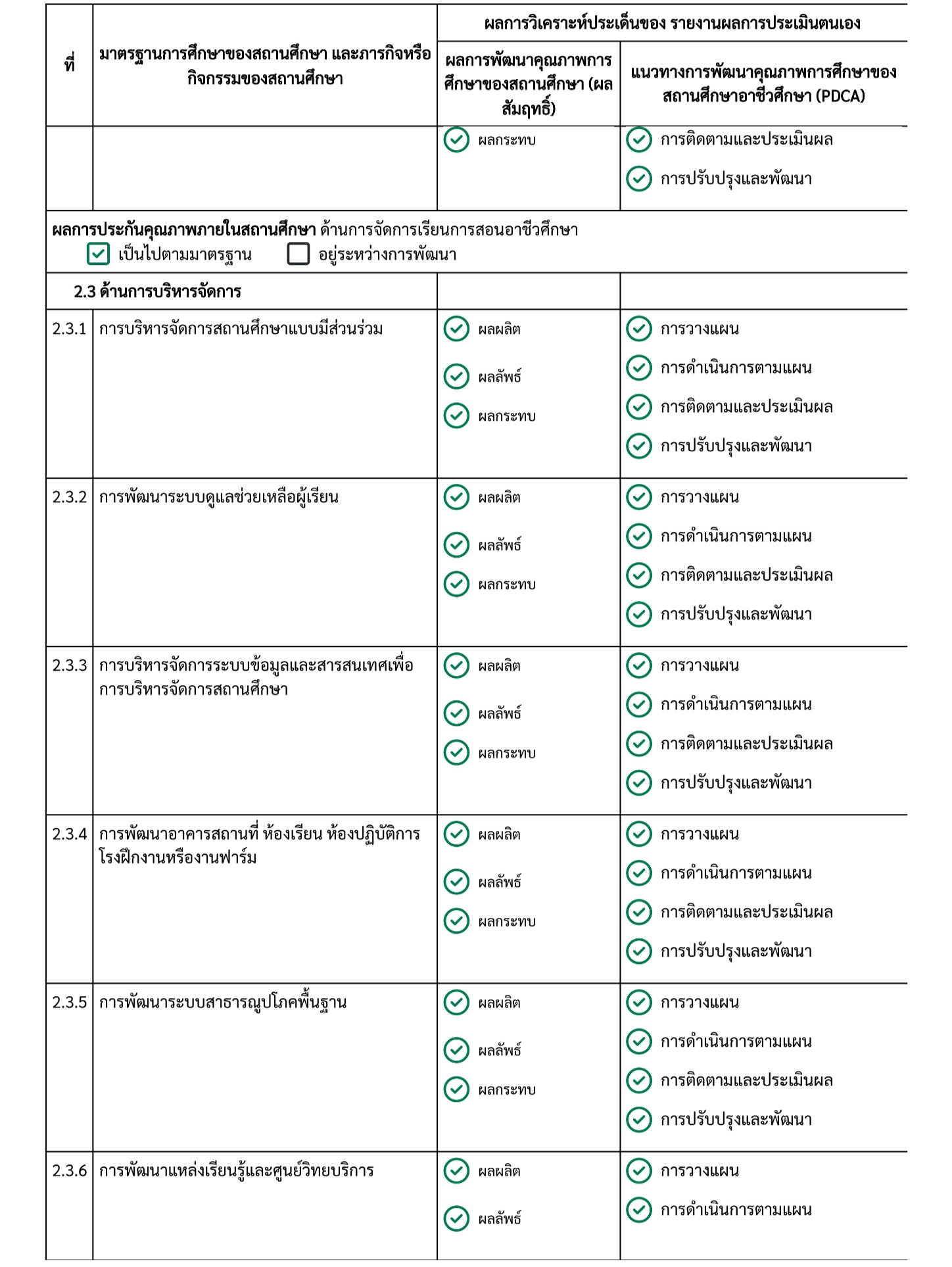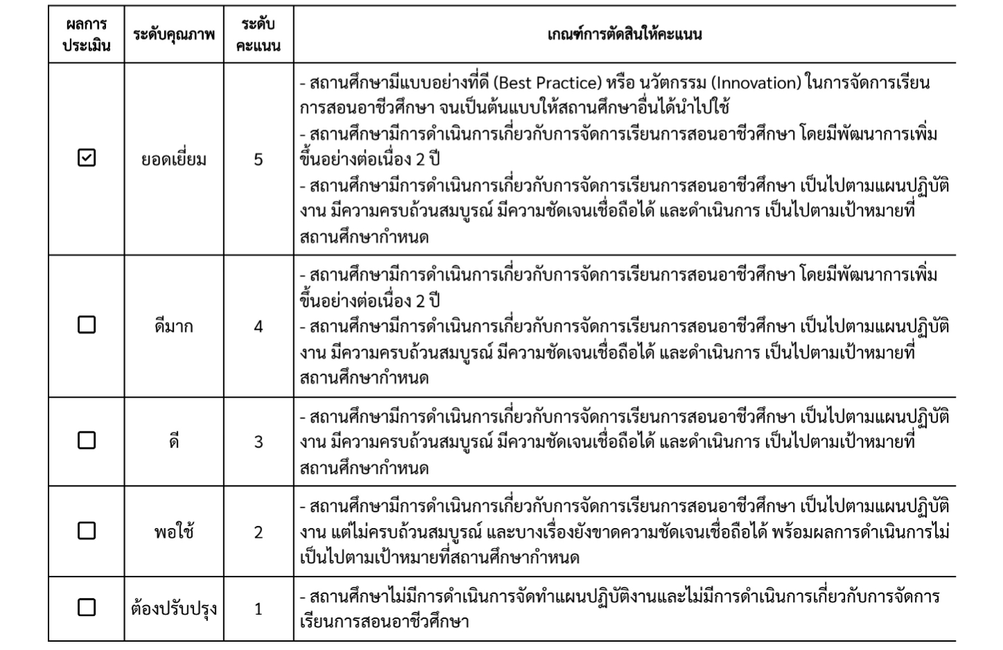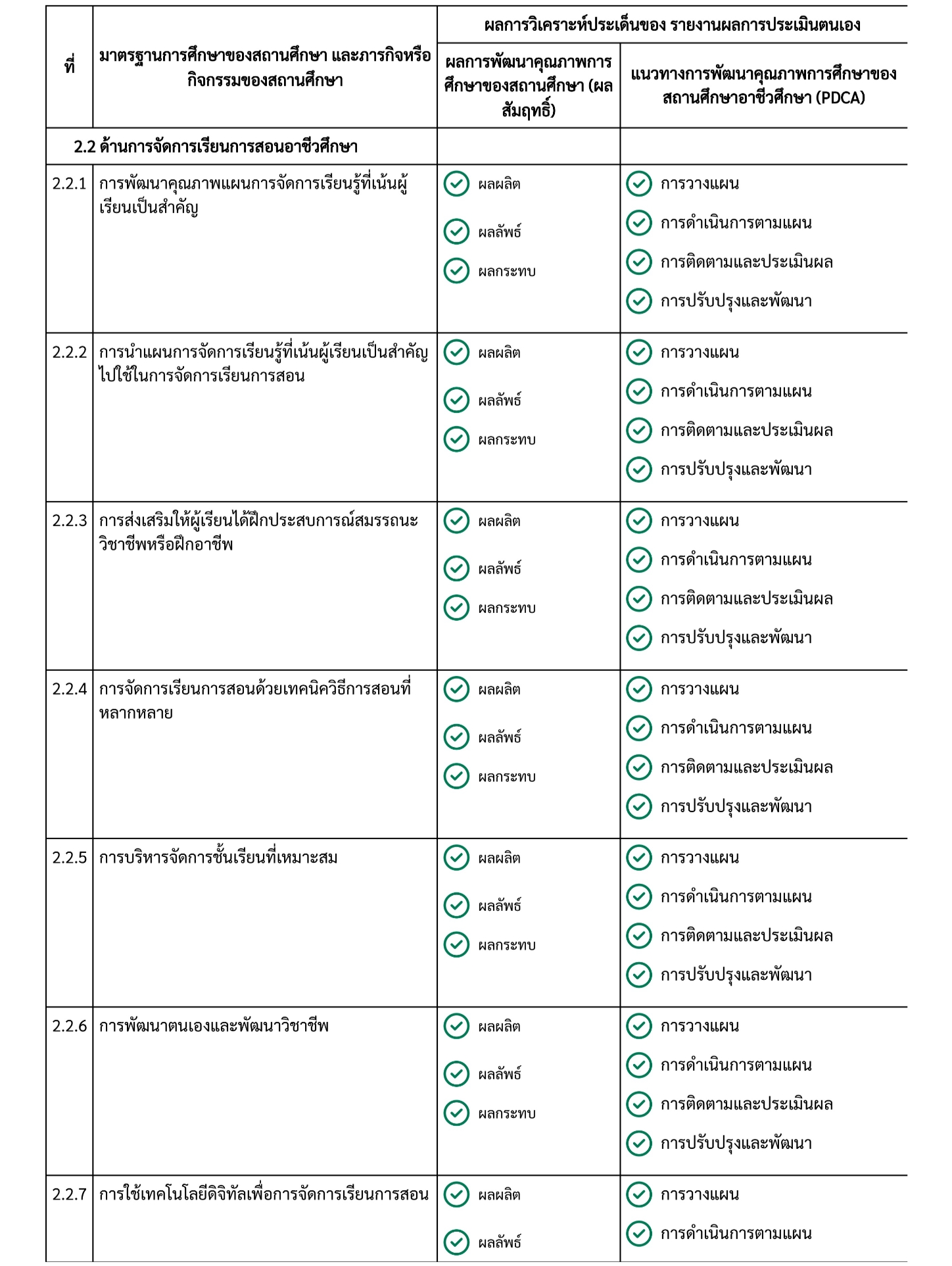 2. การประเมินคุณภาพภายในสถานศึกษาตามมาตรฐานการอาชีวศึกษา