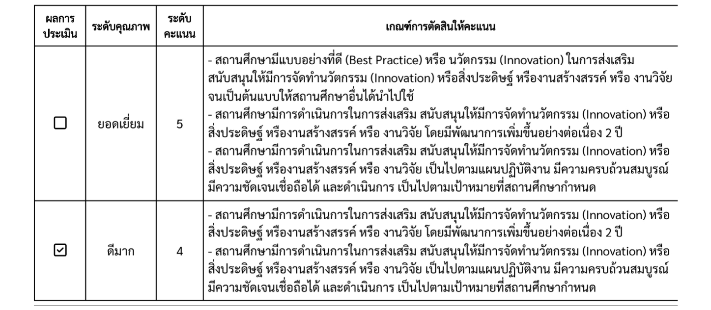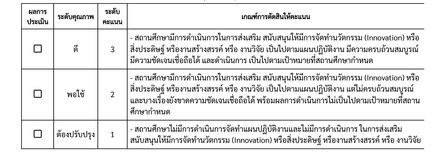1) ประเด็นการประเมิน ด้านนวัตกรรม สิ่งประดิษฐ์ งานสร้างสรรค์ งานวิจัย