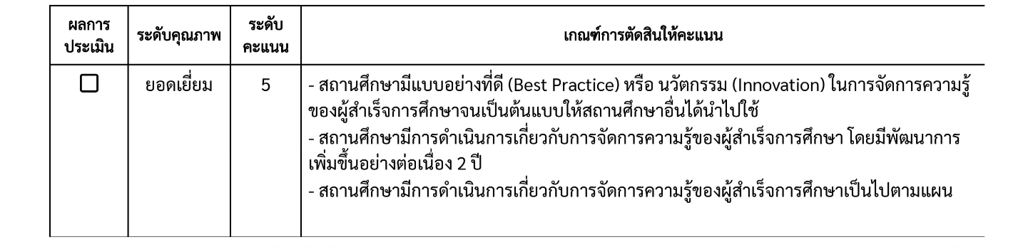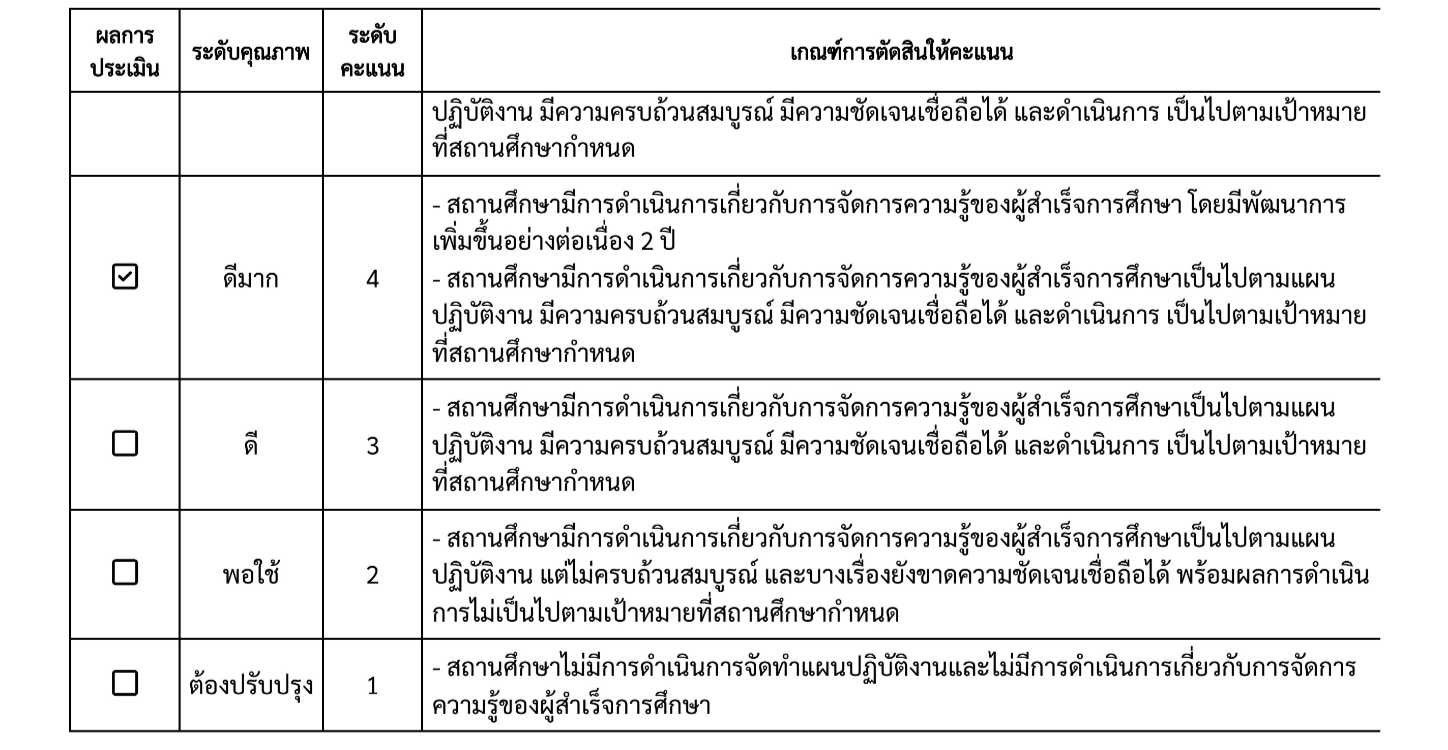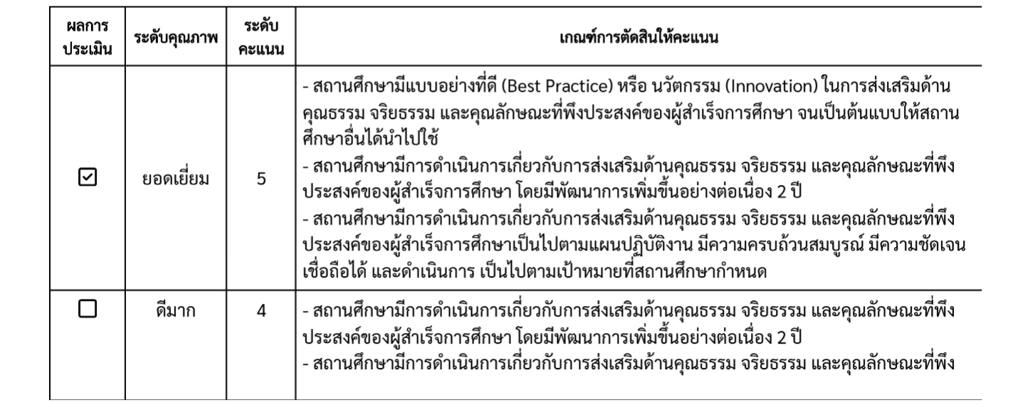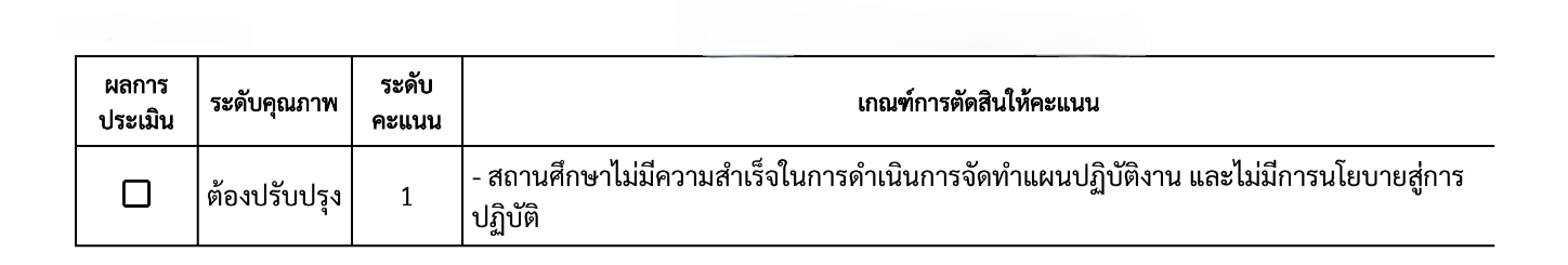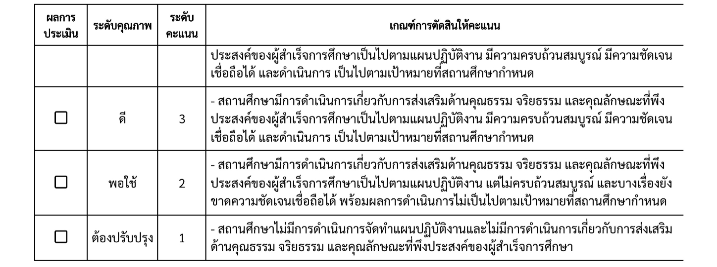 โดยในการดำเนินการประเมิน สถานศึกษาสามารถบันทึกผลการประเมินระดับมาตรฐาน ได้ดังนี้