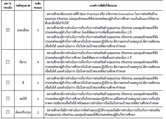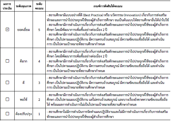 2. ผลการพัฒนาคุณภาพผู้สำเร็จการศึกษาด้านความรู้ที่เป็นแบบอย่างที่ดี (Best Practice) หรือ นวัตกรรม (Innovation) จนเป็นต้นแบบให้สถานศึกษาอื่นได้นำไปใช้