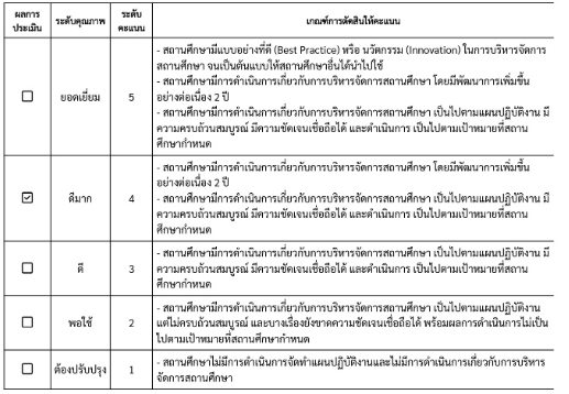 • การจัดส่งรายงานผลการประเมินตนเองให้แก่หน่วยงานต้นสังกัดหรือหน่วยงานที่กำกับดูแลสถานศึกษา