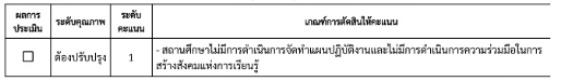 – ด้านสิ่งแวดล้อมหรือด้านอื่น ๆ ตามบริบทของสถานศึกษา