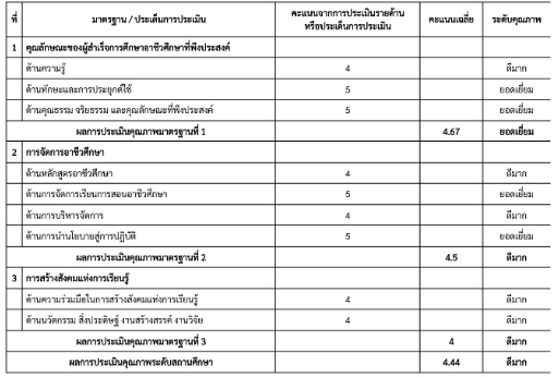 สรุป ผลการประเมินคุณภาพภายในสถานศึกษาตามมาตรฐานการอาชีวศึกษา ในภาพรวมของสถานศึกษาอยู่ในระดับคุณภาพ ดีมาก ที่ระดับคะแนน 4.44