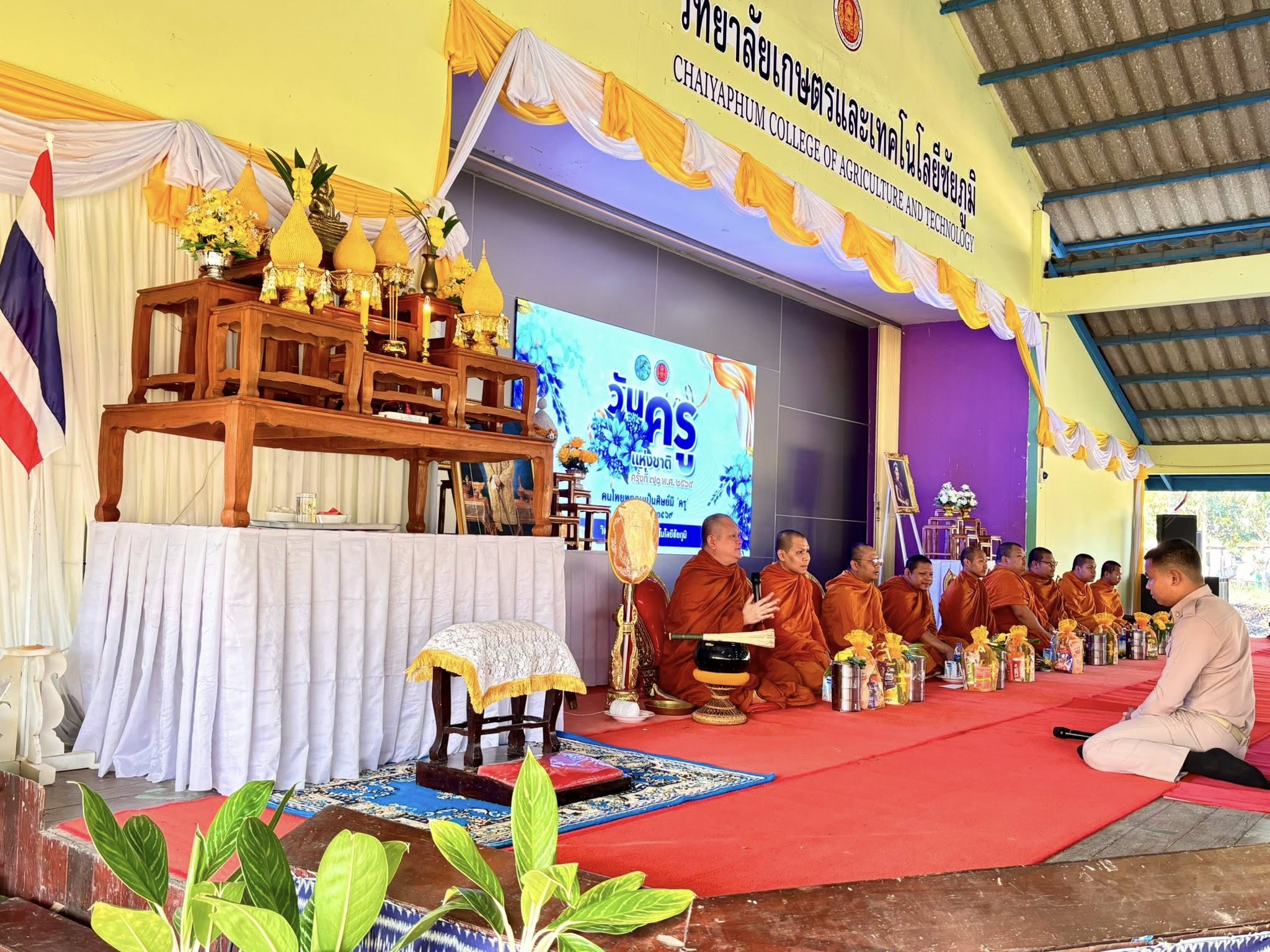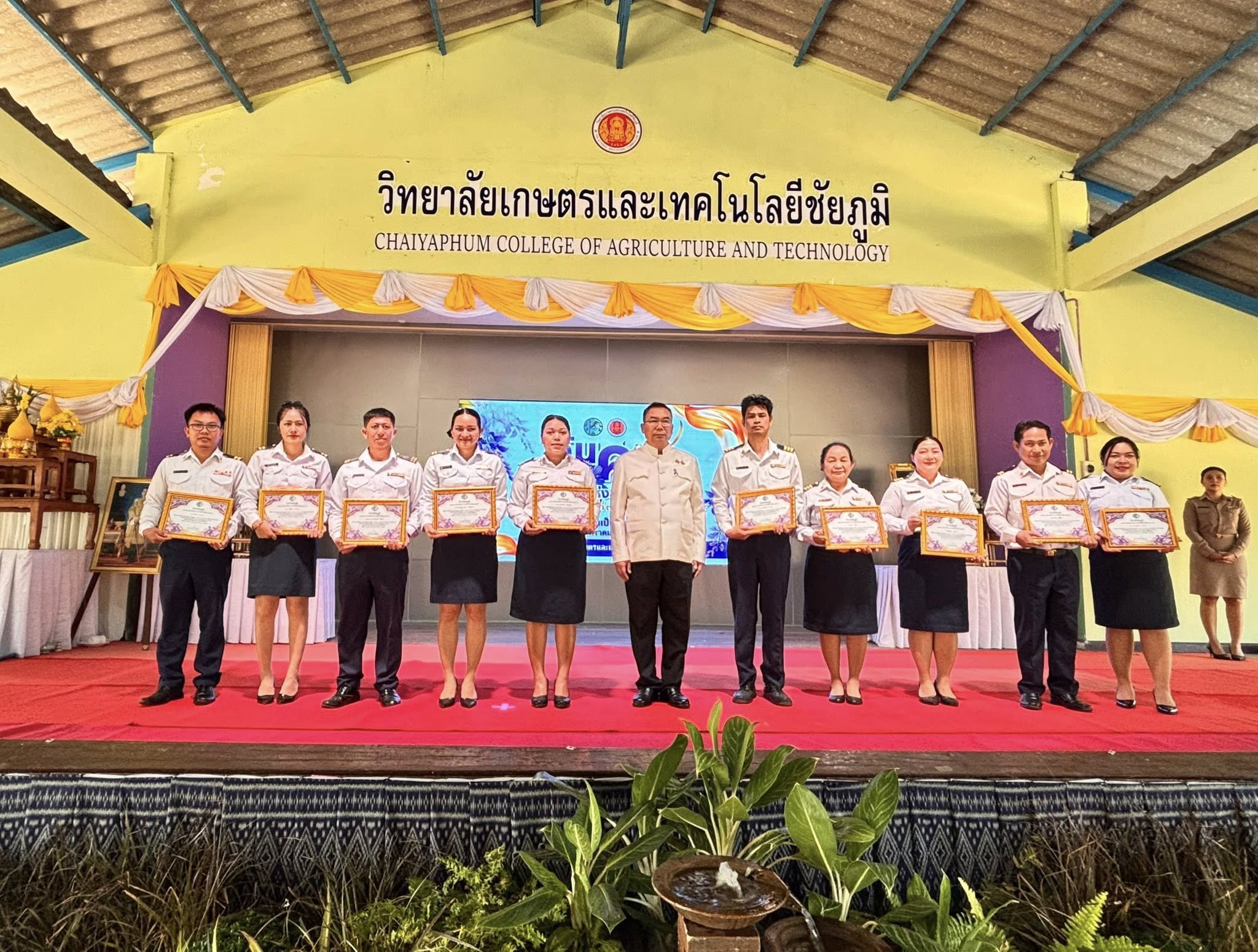 นายวิรัตน์ ทองมี ผู้อำนวยการวิทยาลัยเทคโนโลยีภูเขียว(พี-เทค) คณะผู้บริหาร ครู บุคลากรและเจ้าหน้าที่ ร่วมกิจกรรม “วันครู” ณ วิทยาลัยเกษตรและเทคโนโลยีชัยภูมิ